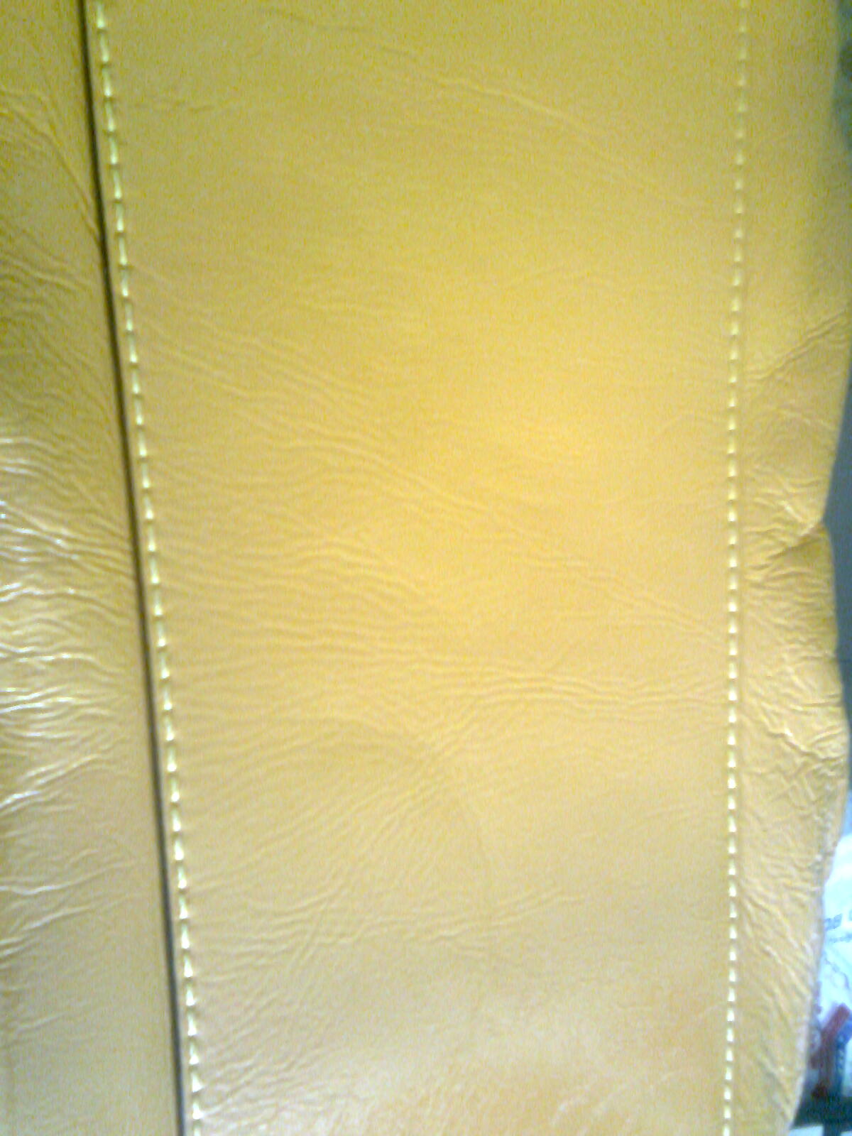 ดูกระเป๋าเต็มใบ ด้านหน้ากันก่อนน่ะค่ะ เนื่องจากกล้องคุณภาพดีเกินไป (กล้องจากมือถือ) จึงทำให้ได้ภาพที่มัว ๆ ไปหน่อย แต่จะคอยเขียนรายละเอียดใส่เข้าไปน่ะค่ะ ใบนี้เป็นหนังย่น ๆ หน่อย มัน ๆ อ่ะค่ะ จะว่าเป็นหนังแก้ว ก็คงไม่ใช่ ไม่รู้ว่าเขาเรียกว่าอะไร แต่จะจับแล้วมัน ๆ อ่ะค่ะ เหมือนเคลือบด้วยพลาสติก (ถ้าหนังแก้ว หนังจะตึงใช่ไหมค่ะ) อันนี้จะเป็นรอยย่น รอยของหนังอ่ะค่ะ