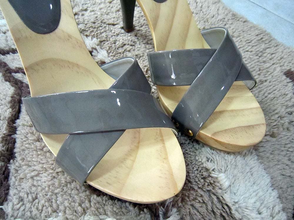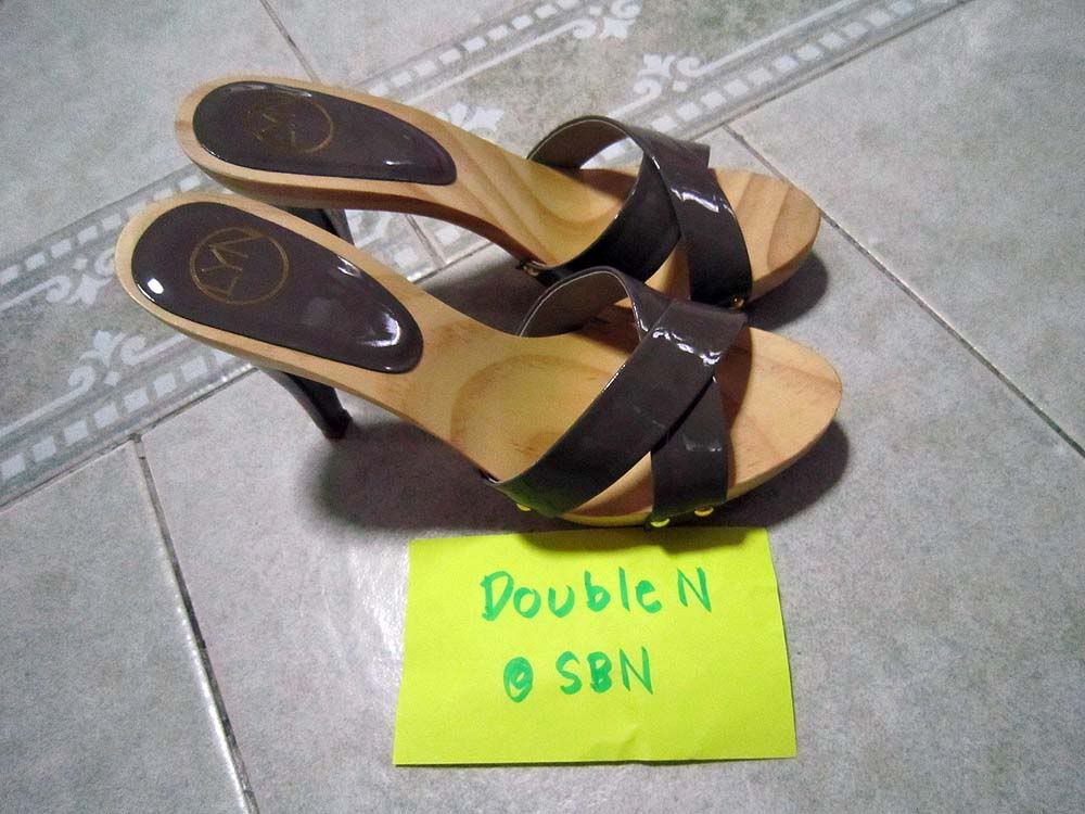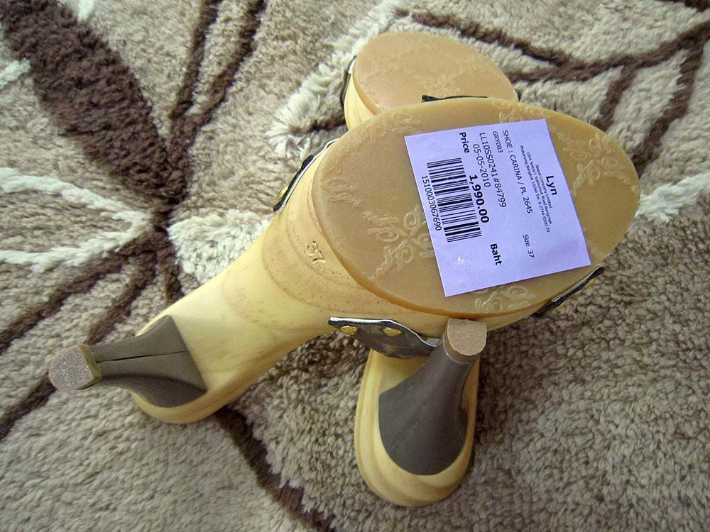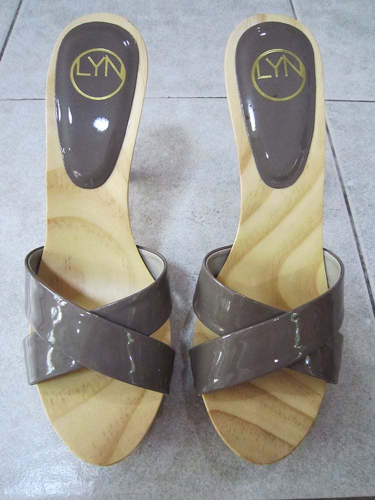 NEW - รองเท้า LYN เบอร์ 37 พื้นไม้ สายคาดสีเทา