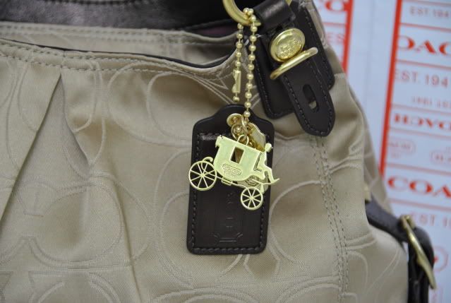Coach MIA Outline C Maggie ราคา 8,900 บาท มีใบ 1 ใบค่ะ ใบนี้ชนช้อป มาพร้อมกับถุงผ้า และ care card ค่ะ มีที่ห้อยกระเป๋าเป็นรูปรถม้าด้วย