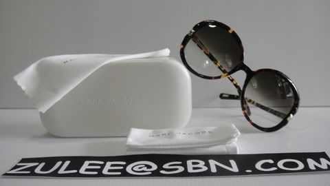 MARC JACOBS Sunglasses - Tortoise Frame with Brown Shaded Lens พร้อมส่งค่ะ!!! รุ่นหายากอีกรุ่นค่ะ เป็น Oversized Style ค่ะ กรอบเป็นสีกระ สีเลนส์สวยมั่กๆค่ะ ตรงขาแว่นตกแต่งด้วยคริสตัวสีขาว และหินสีฟ้าค่ะ ใส่แล้วดูรู้เลยว่าเป็น MJ ค๊าๆๆๆๆๆ แม่ค้าขอขายที่ราคา 6,500 บาทเท่านั้นค่ะ (ขออนุญาต งดต่อรองแล้วนะค๊าๆๆๆๆ)