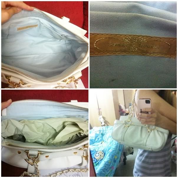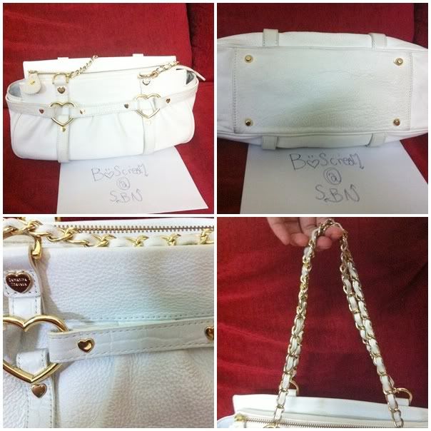 หนังแท้หนานุ่ม สีขาวจั๊วะ ถือหรือสะพายแล้วน่ารักมากๆ จุของได้เยอะพอสมควร กระเป๋าคสอใบโต กระเป๋าตังใบยาว พวงกุญแจ โทรศัพท์ จุได้หมดเลย ^^