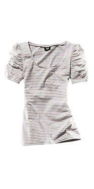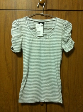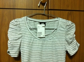 เสื้อลายทาง สีขาวสลับเทา ตรงช่วงแขนย่น ของ H&M ไซด์ xs ขอขาย 590 บาทคะ