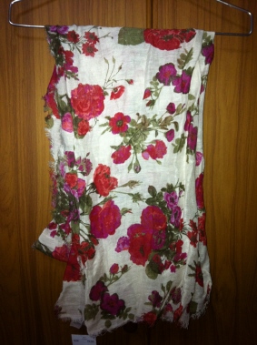 ผ้าพันคอลายสวย แนววินเทจ ลายดอกกุหลาบสีแดง ของ H&M ไซด์ 75*200 ซม. เป็นผ้า linin + viskose ขอขาย 800 บาทคะ