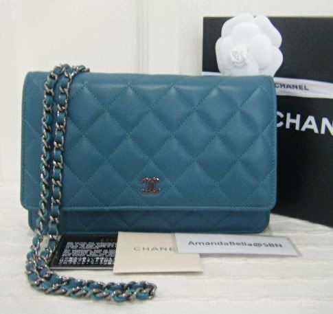 *** NEW *** Chanel Wallet on Chain, Lamb Skin สี Turquoise เป็นสี seasonal สำหรับ Winter Collection 2011 สวยมากสีใหม่ซีซั่นนี้เลยค่ะ หมดแล้วหมดเลยค่ะสีนี้ Hologram 154xxxx มาพร้อมกล่องถุงกระดาษ และริบบิ้น พร้อมสำเนาใบเสร็จค่ะรุ่นนี้ช๊อปไทยราคาพุ่งพรวดไปที่ 5 หมื่นปลายๆแล้วค๊า SOLD คุณติ๊ก