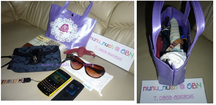 มีถุงผ้า satin ลายสวยมาเสริมให้เก็บของไม่ให้ กันตกหล่น กับสัมภาระเล็ก ๆ น้อย ๆ