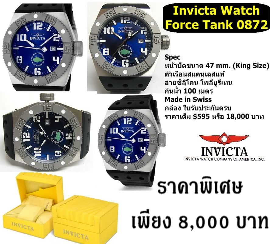 นาฬิกา Invicta Force Tank รุ่น 0871 หน้าปัดสีเทา ขนาดหน้าปัด 4.7 cm. King Size กันน้ำ 100 เมตร สายซิลิโคน ทำจากโพลียูรีเทน ทนมากๆ ตัวสายโค้งรับกับข้อมือ ตัวเรือนสแตนเลสแท้ เรือนนี้ทำในประเทศ Swiss งามมากๆนะครับ เหมาะกับคนที่หานาฬิกาไฮๆๆ ดูดีๆเท่ห์ใส่ๆมาก เรือนนี้จะใหญ่ตาม Concept ของรถถังนะครับ Force Tank ของใหม่ พร้อมกล่อง และ ใบรับประกัน