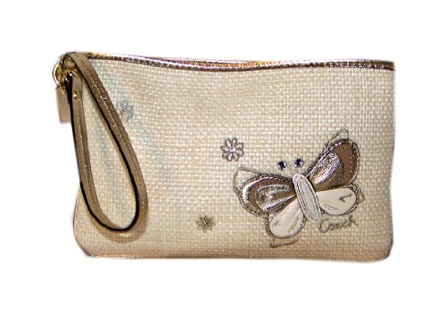 8. COACH Straw Butterfly Applique Wristlet