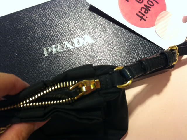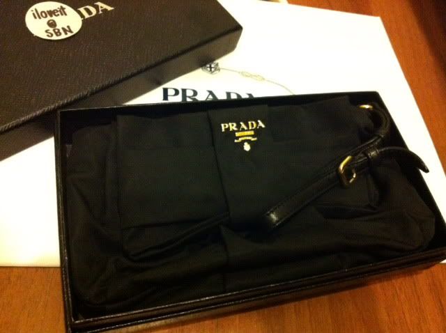 ซื้อจาก shop เอ็มโพเรียม รุ่นนี้ไม่มีถุงผ้านะคะ กล่องจำไม่ได้ว่าได้มารึปล่าว แต่จะให้กล่องในภาพไป ใส่ได้แต่อาจจะต้องพับก้นนิดนึงตามรูป แต่กระเป๋าเป็นผ้าที่ก้นไม่มีหนังจึงไม่มีผลต่อการใช้งานค่ะ กล่องมีบุบตรงมุมขวาล่างจิ๊ดนึงตามรูปแรกค่ะ ขายที่ 8,400 >> SALE 7,500 บาท ใบนี้กลายเป็นหนึ่งใน timeless ของ prada clutch ใช้ได้อีกนานแสนนานค่ะ ^ ^