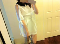 4.เดรส sleeping pills สีขาว เว้าไหล่ ปกดำ ตัวนี้ไซส์Lค่อนข้างใหญ่ไป เห็ฯเเล้วอยากได้มาก เหลือแต่lก็สอยมา หน้ามืดไปค่ะ ใครสะโพก37-38ใส่ตัวนี้ได้เลยค่ะ