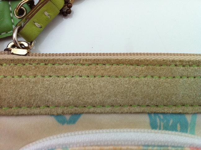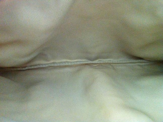 ขอบกระเป๋าด้านในเนื้อผ้าเปลี่ยนสีตามกาลเวลา ไม่มีผลต่อการใช้งาน