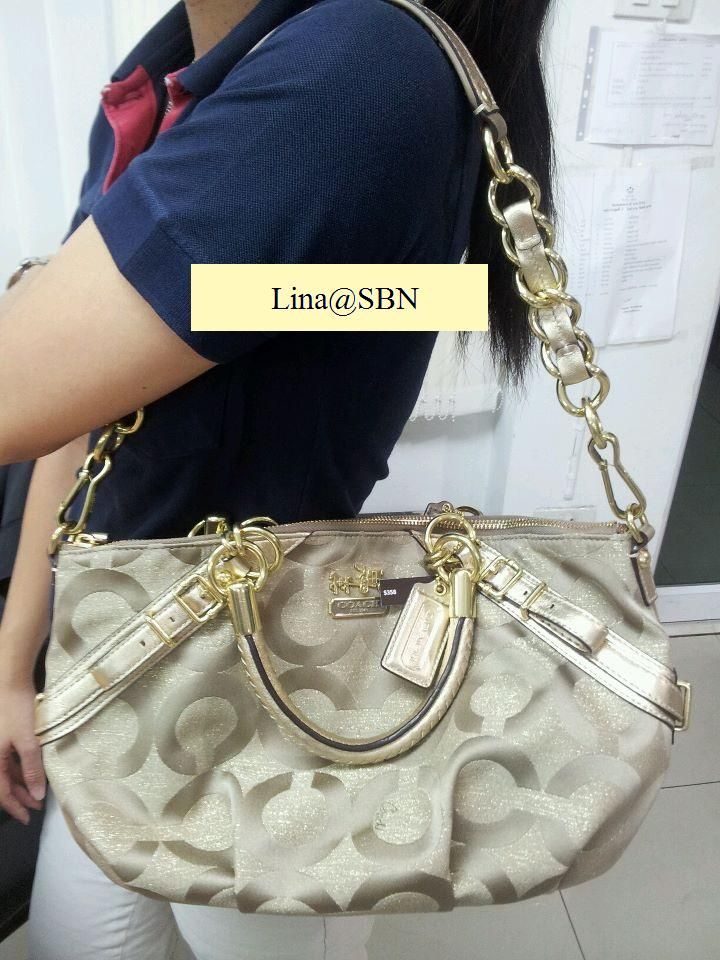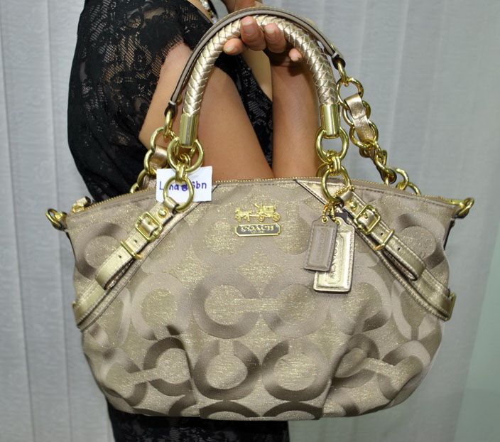 Coach 17693 madison op art sateen sophia satche 1 4 1/4" (L) x 9 1/2" (H) x 3 1/4" (W) สีทอง ราคา 8200