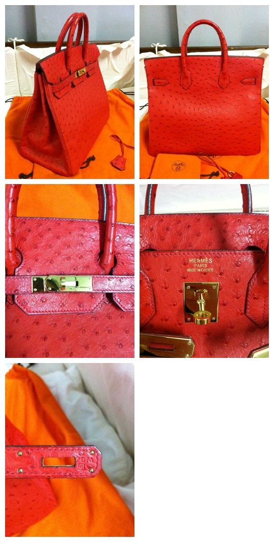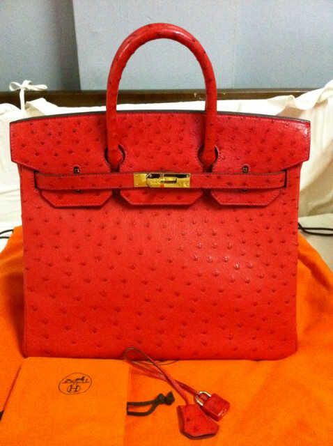 - Birking Hac 32" Rouge Vif (discontinued color), Ostrich leather, ghw, Stamp K. Used like new & very hard to find. 560,000.-