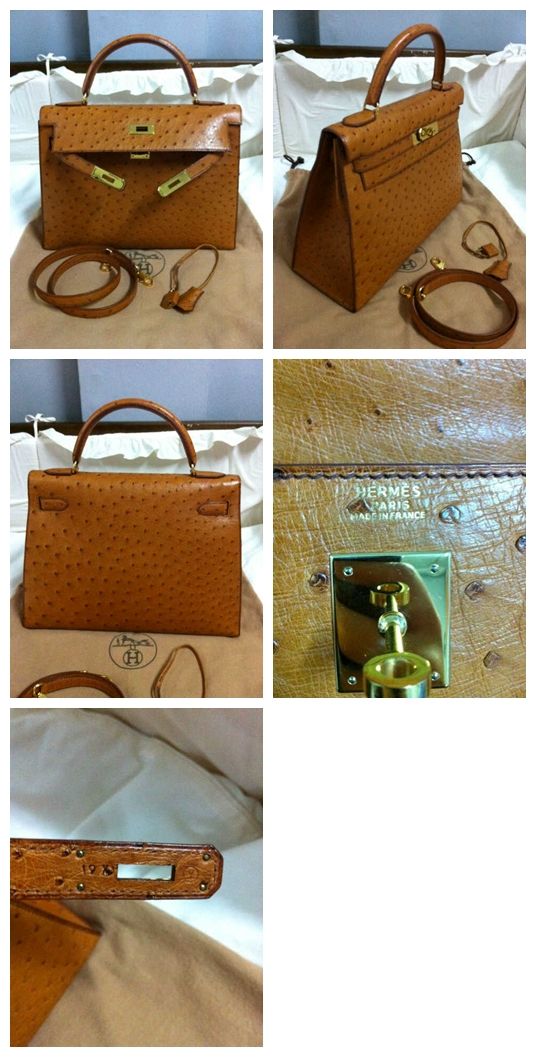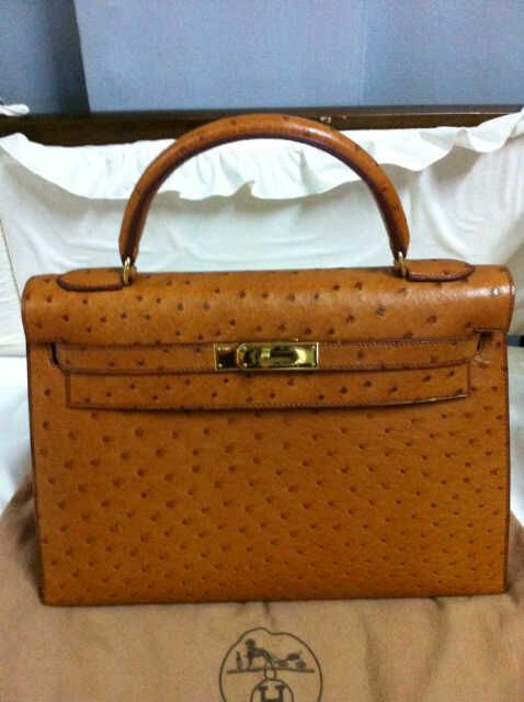 - Kelly 28" Cognac colour, Ostrich leather, ghw, hardly used. Great condition @ 350,000.-