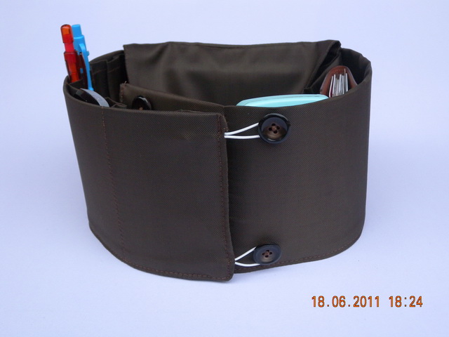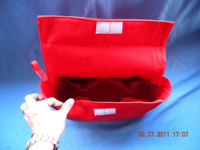 ด้านในประกอบด้วย ช่องใส่ของ 6 ช่อง ฝาปิดด้วยตีนตุ๊กแกด้านใน