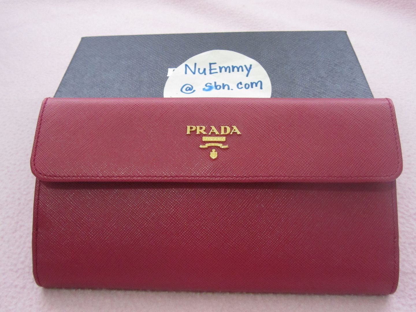 [SIZE="5"]New Prada Long Wallet แบบกระดุม สีชมพูสด (Fuxia) ด้านนอกและในเป็นหนัง สวยมากๆๆ ค่ะ ด้านหน้ามีรอยเปื้อนนิดนึง ตอนซื้อไม่เห็นอ่ะค่ะ มีกล่องกับการ์ดพลาสติกค่ะ