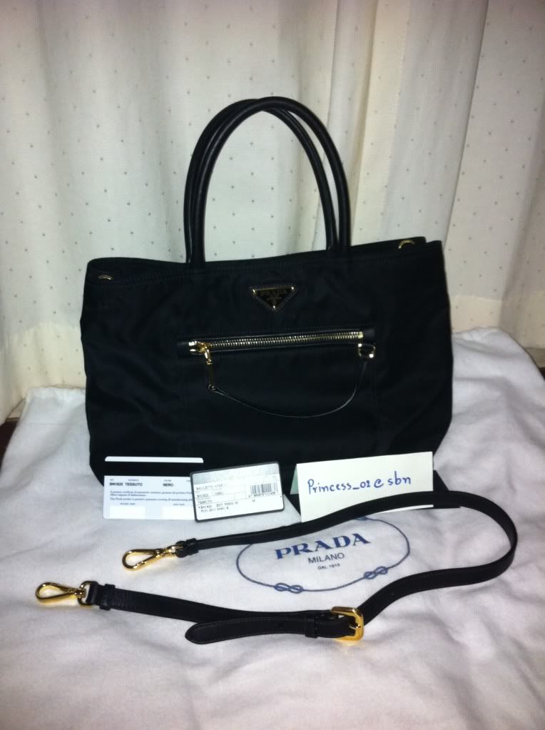 ใบแรก NEW PRADA อะไหล่ทอง บินตรงจากอิตาลี มาพร้อมสายสะพายทำให้สามารถถือได้หลายแบบ คล้องแขนก็ดูคุณหนู สะพายก็ดูทะมัดทะแมง แถมเวลาวางก็ไม่ต้องกลัวเปื้อน เพราะมีปุ่ม 4 ปุ่ม ที่ฐาน รับรองได้ไปคุ้มจริงๆคะ เปิดตัวด้วยราคาไม่แพงที่ 22,500 บาท