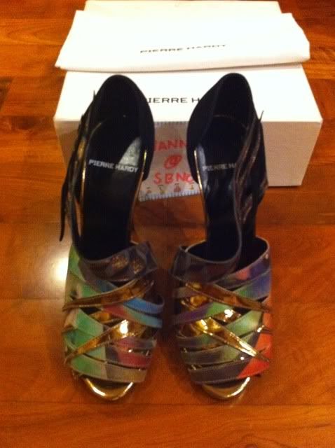 New รองเท้า Pierre Hardy size 39 รองเท้าsizeเล็กกว่าปกตินะคะ ความยาวประมาณ 23 ซม. สูง 4" สวยมากๆค่ะแต่ซื้อมาใส่ไม่ได้เล็กไป ขาย 7,500 บาท