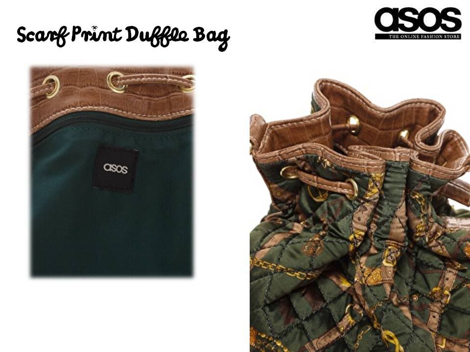 ASOS - Scarf Print Duffel Bag - Size 31 X 34 CM. ใช้ไปครั้งเดียวเองค่ะ ขอขายที่ราคา 1,100 บาทค่ะ