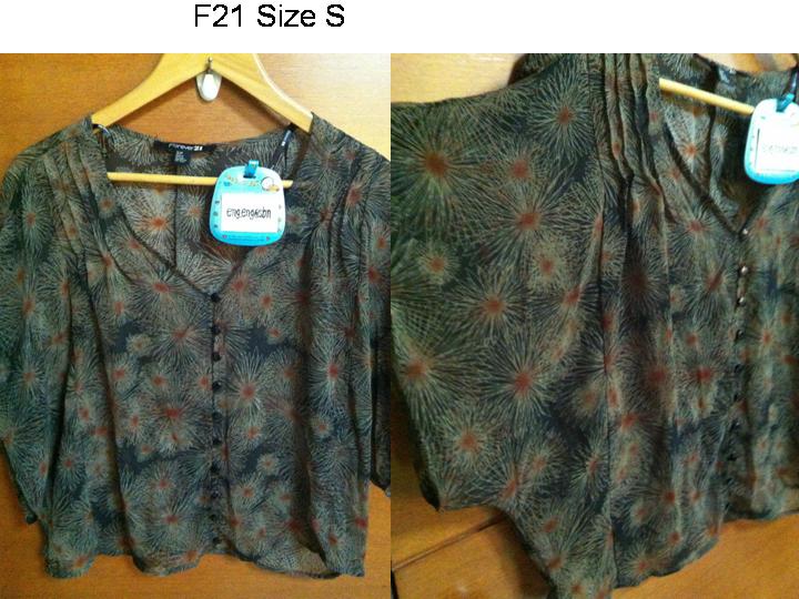 SIZE S สีเขียวขี้ม้า อก กว้าง33-34" ยาว 30" ราคา เต็ม990 บาท ขายแค่ 530 บาท