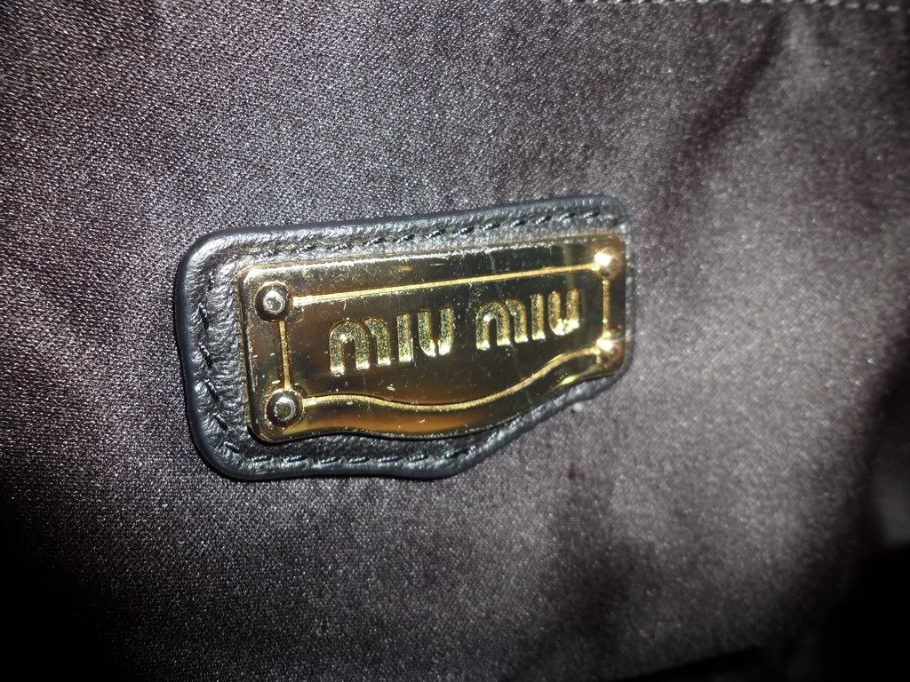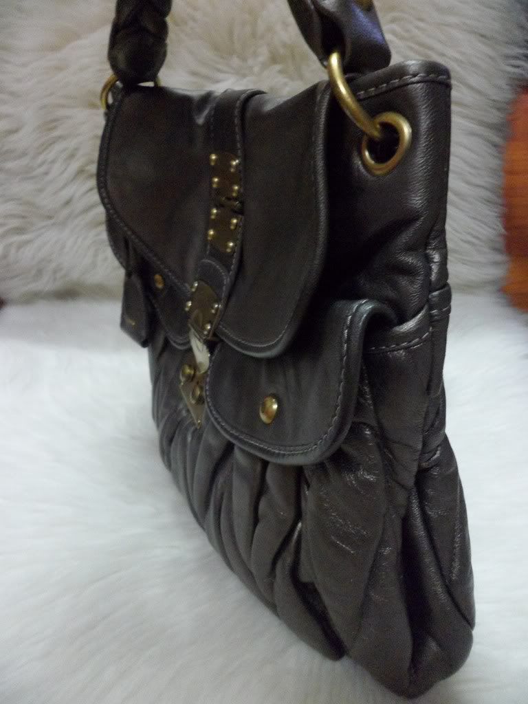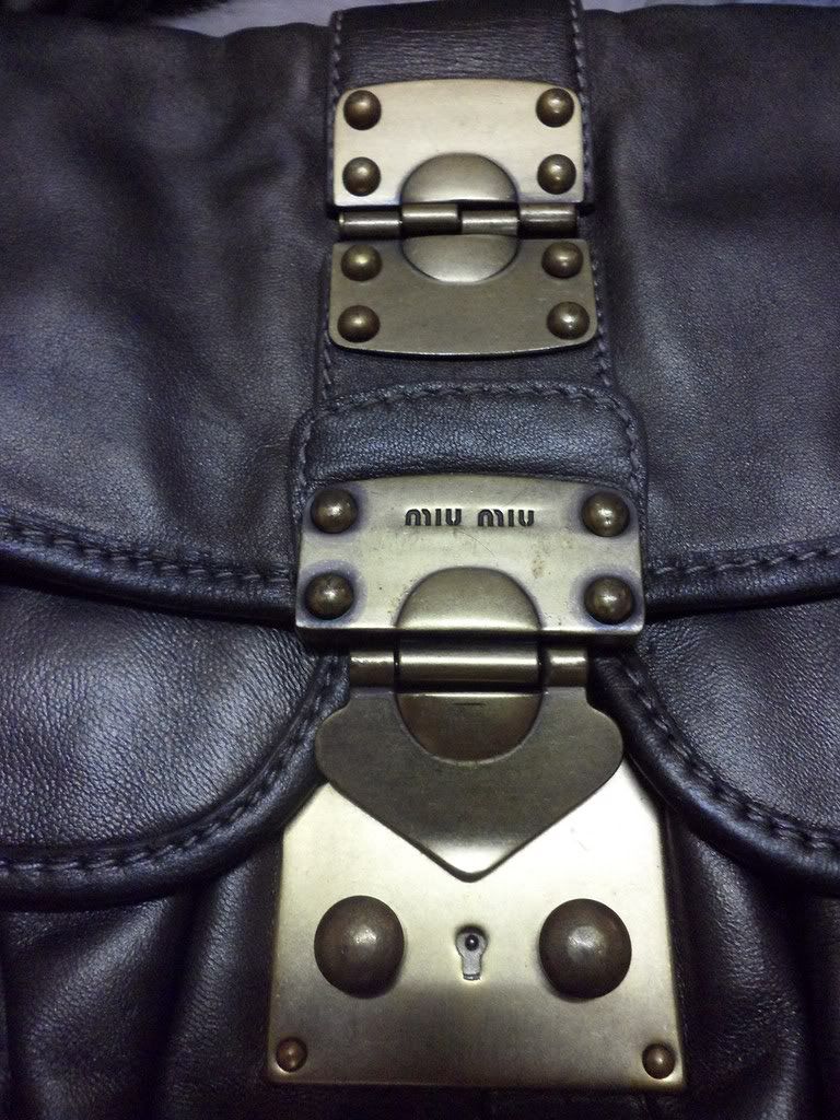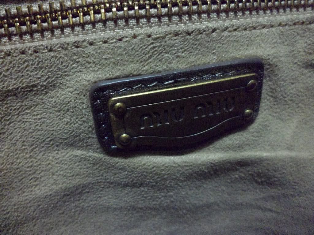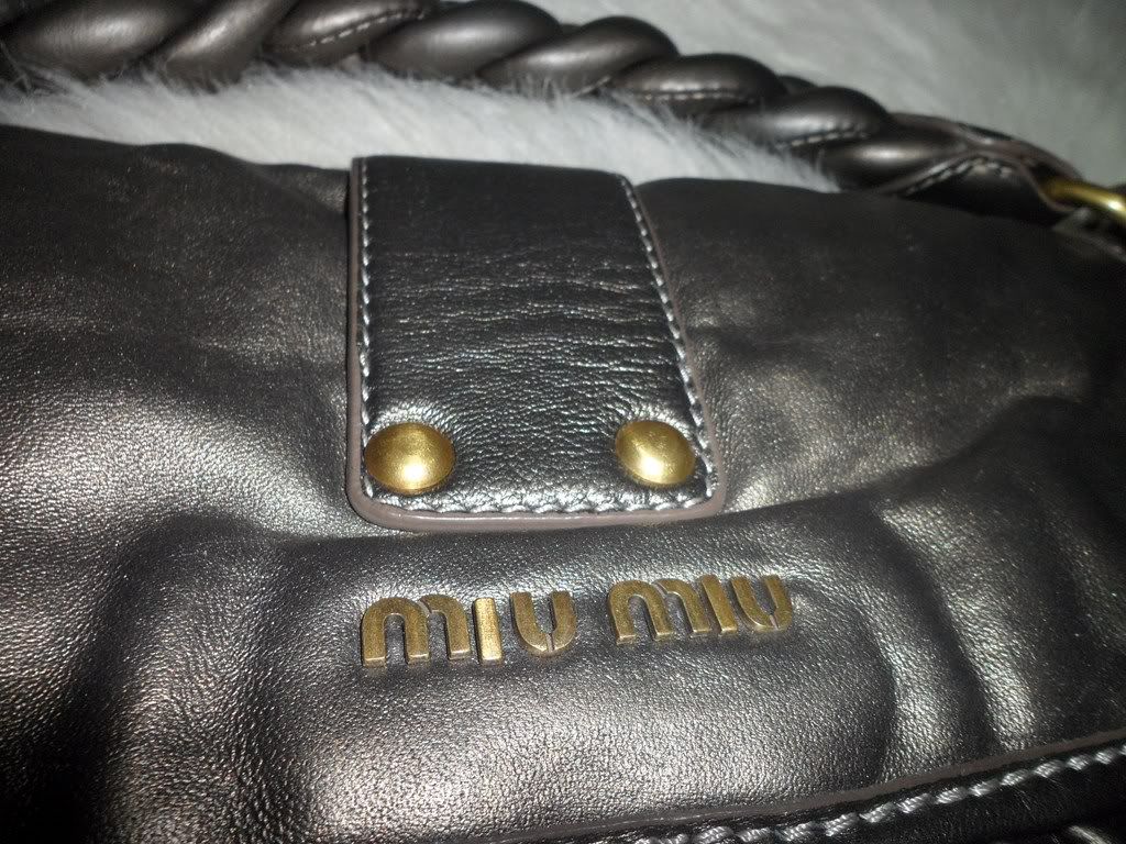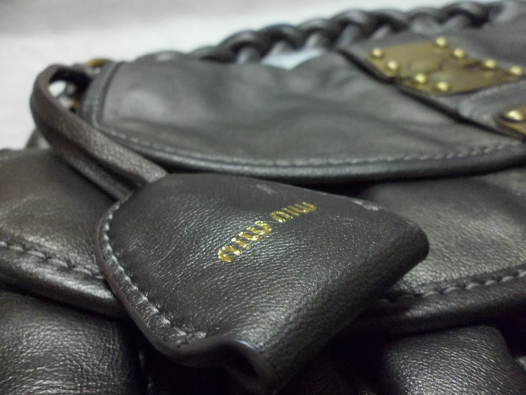 Miu Miu หนังน้ำตาลเข้มหมุดรอบใบ