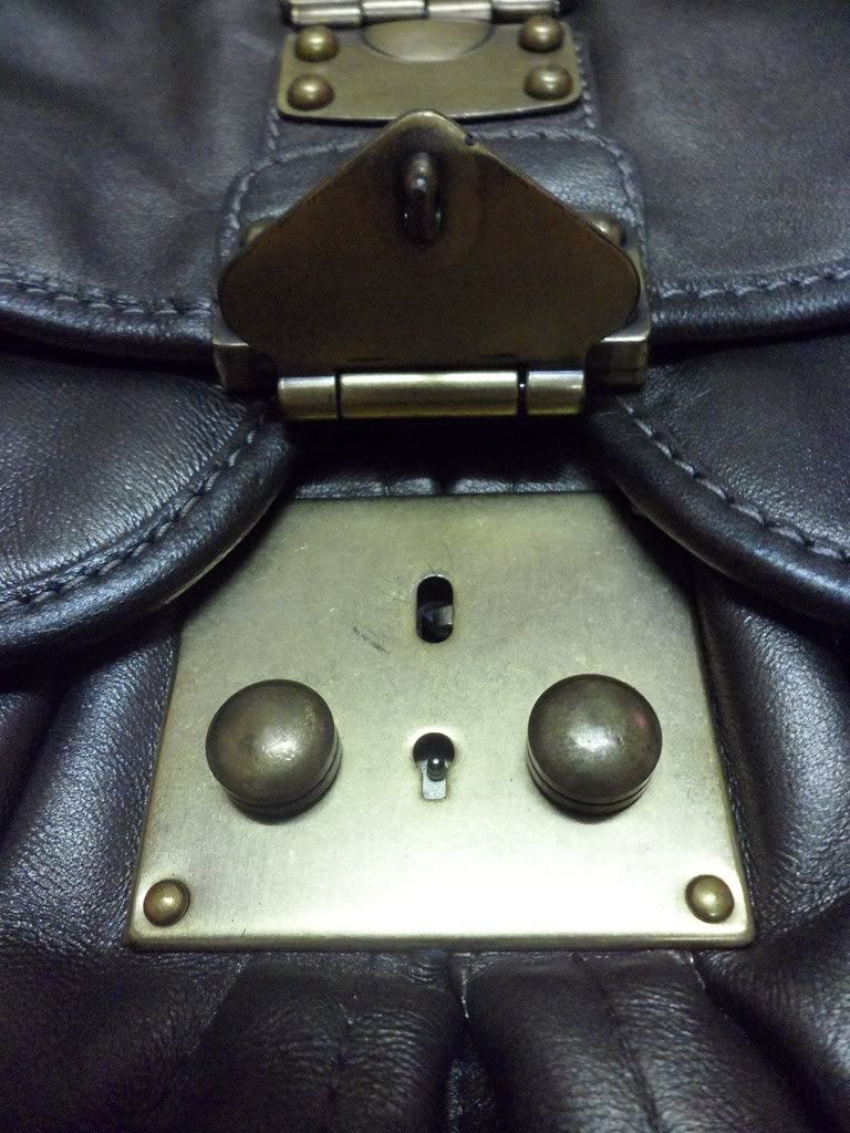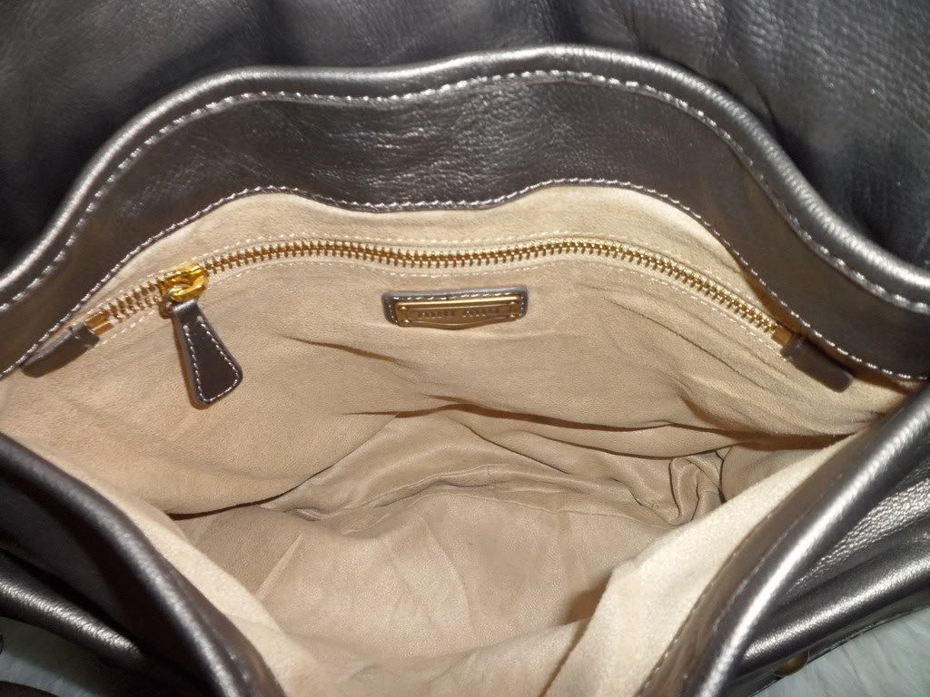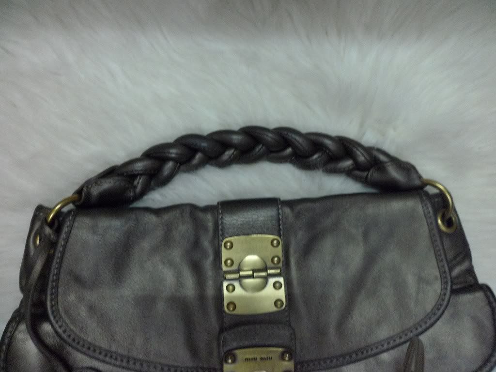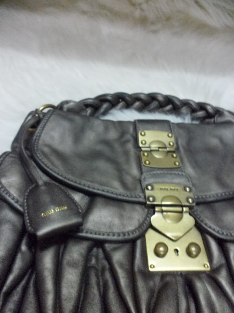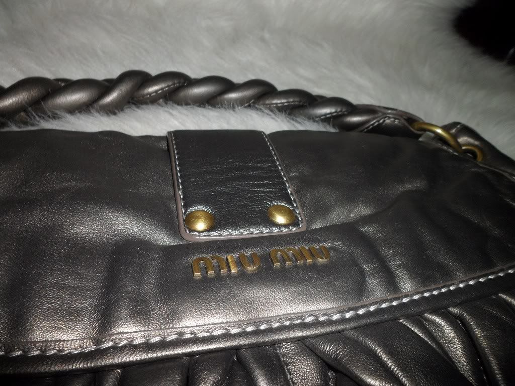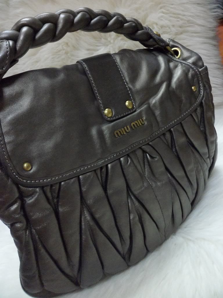 Miu Miu หนังน้ำตาลเข้มหมุดรอบใบ