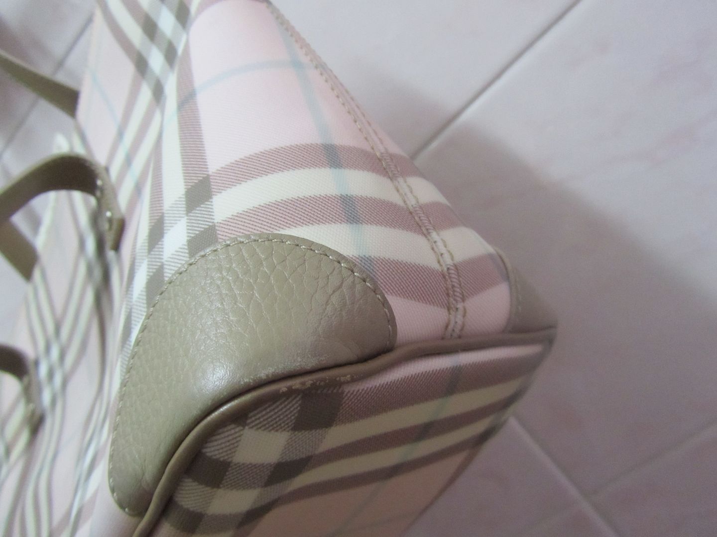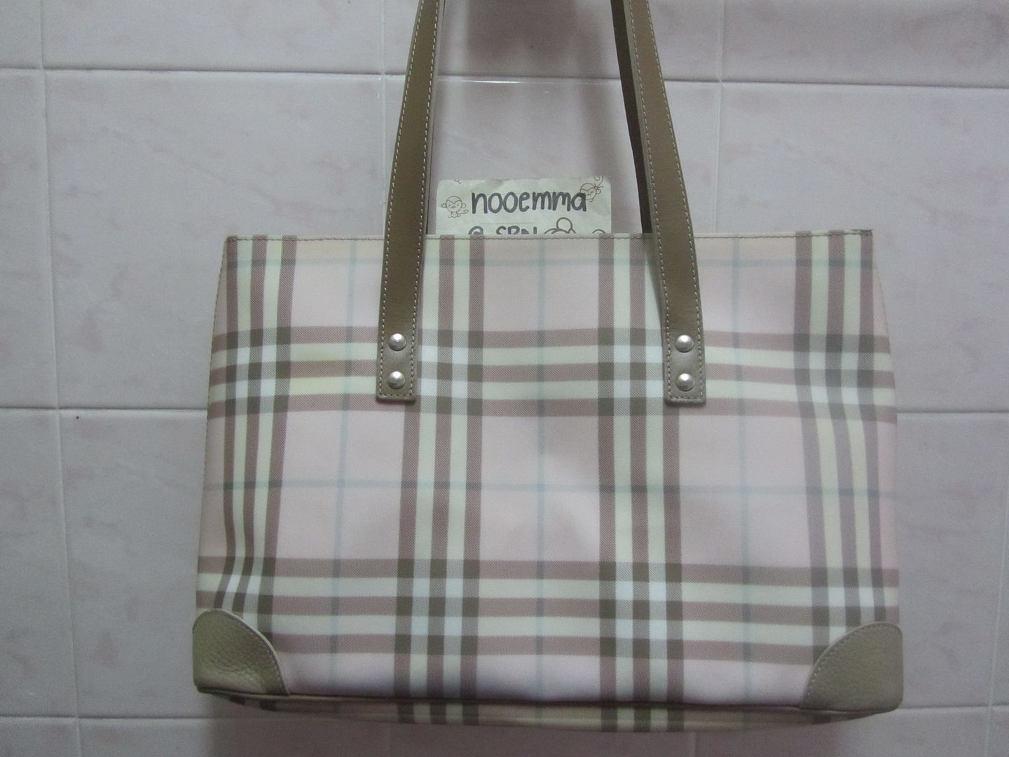 [SIZE="3"]Burberry Tote Bag หนัง PVC ลายตาราง สีชมพู ใส่ของได้เยอะ สภาพดี ตามรูปเลยค่ะ [SIZE="4"]