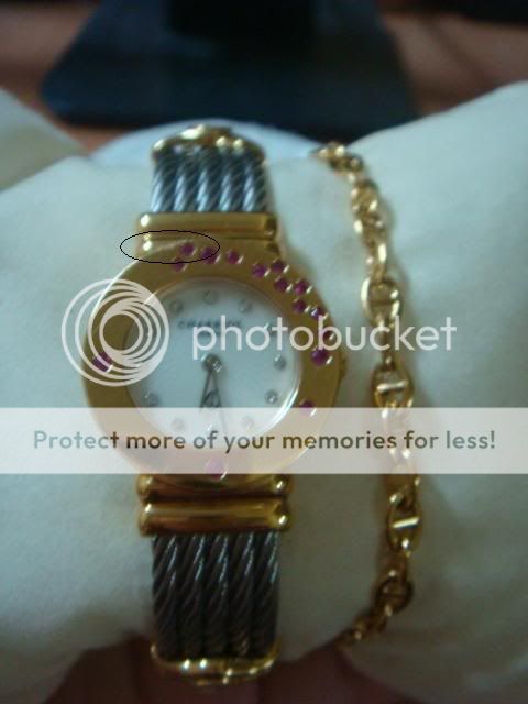 นาฬิกาCharriol ,2กษัตริย์ พลอยชมพูที่หน้าปัด ตัวเรือนสวยงามค่ะ หน้าปัดมีรอยขนแมว ตามการใช้งาน มีรอยใหญ่ๆหน่อยตรงมุมซ้ายบนที่วงไว้ค่ะ ที่เหลือสวยมาก และ หายากนะคะ^^ กล่อง+การ์ดครบค่ะ ขอขายที่ 26,900 บาท#