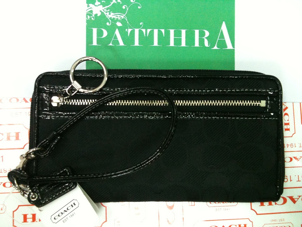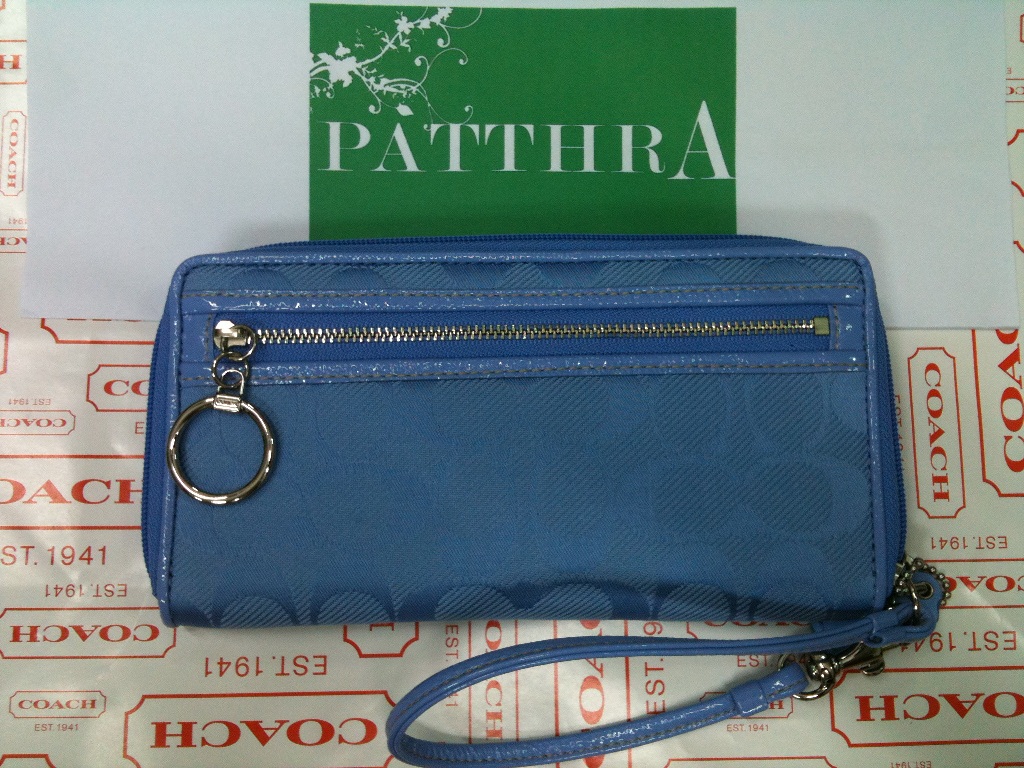 7. COACH wallet signature print สีดำและสีฟ้า