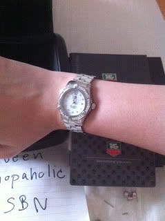 Tag Heuer Aquaracer รุ่นนี้ มาเรีย ซาราโปว่าเปนพรีเซนเตอร์นะคะ หน้ามุก ฝังเพชร (ในชอปยังมีอยู่นะคะ)