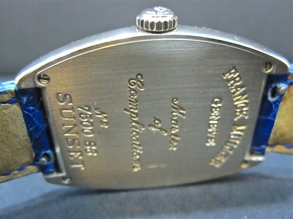 1. FRANK MULLER ( SUNSET ) WHITEGOLD หน้าตัวเลข นำ้เงิน สาย นำ้เงิน สภาพ 90% ไม่มี รอยหนัก ใบปี 05 ราคา