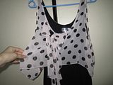 · Dress สีดำผ้ายืด แต่ผ้าชีฟองสีชมพูครีมลาย Polka Dot ผูกโบว์ด้านหน้า สวย Sexy ค่ะ