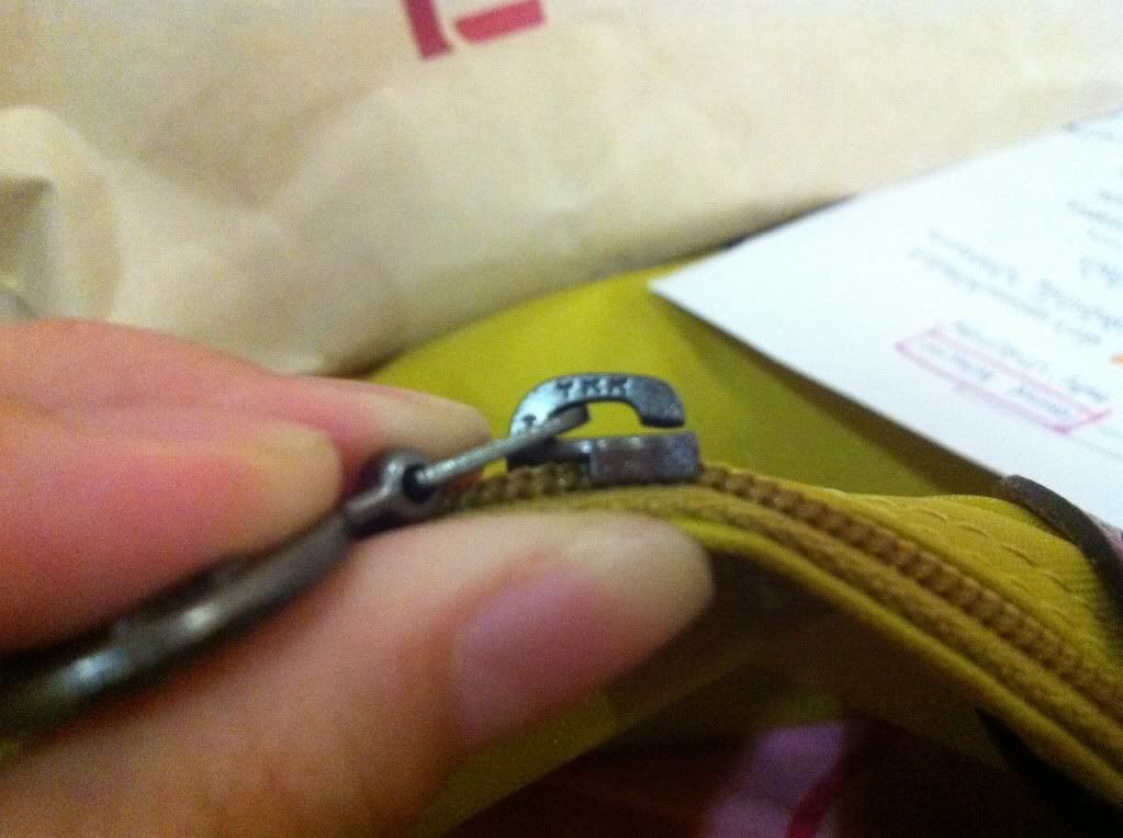 (ในรูป ตรงสายชมพูข้างซ้าย จะเห็นเห็นรอยเหลืองๆ สีจะหม่นกว่าสายชมพูด้านขวาค่ะ)