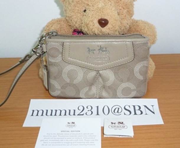 -Coach Madison Dotted Op Art Wristlet สี Khaki