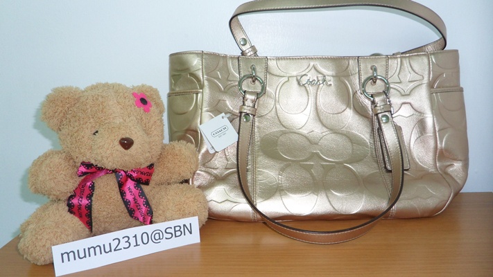 -Coach 17727 Embossed Metallic Gold Leather Gallery Tote Handbag