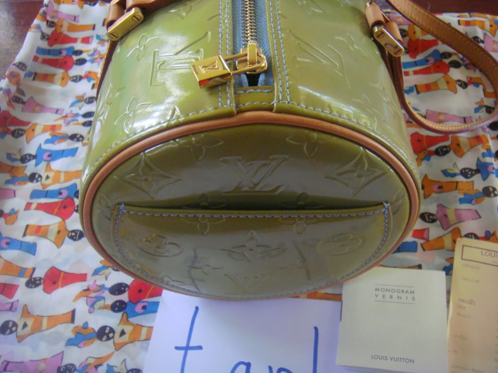 1.LV VERNIS สายเข้มขึ้น1ระดับ มีจุดดำเล็กๆบนกระเป๋าแต่ไม่ใช่ทั้งใบนะคะ สีไม่เสมอกันแต่โดยรวมยังสวยค่ะ อุปกรณ์มีการ์ดเล็ก