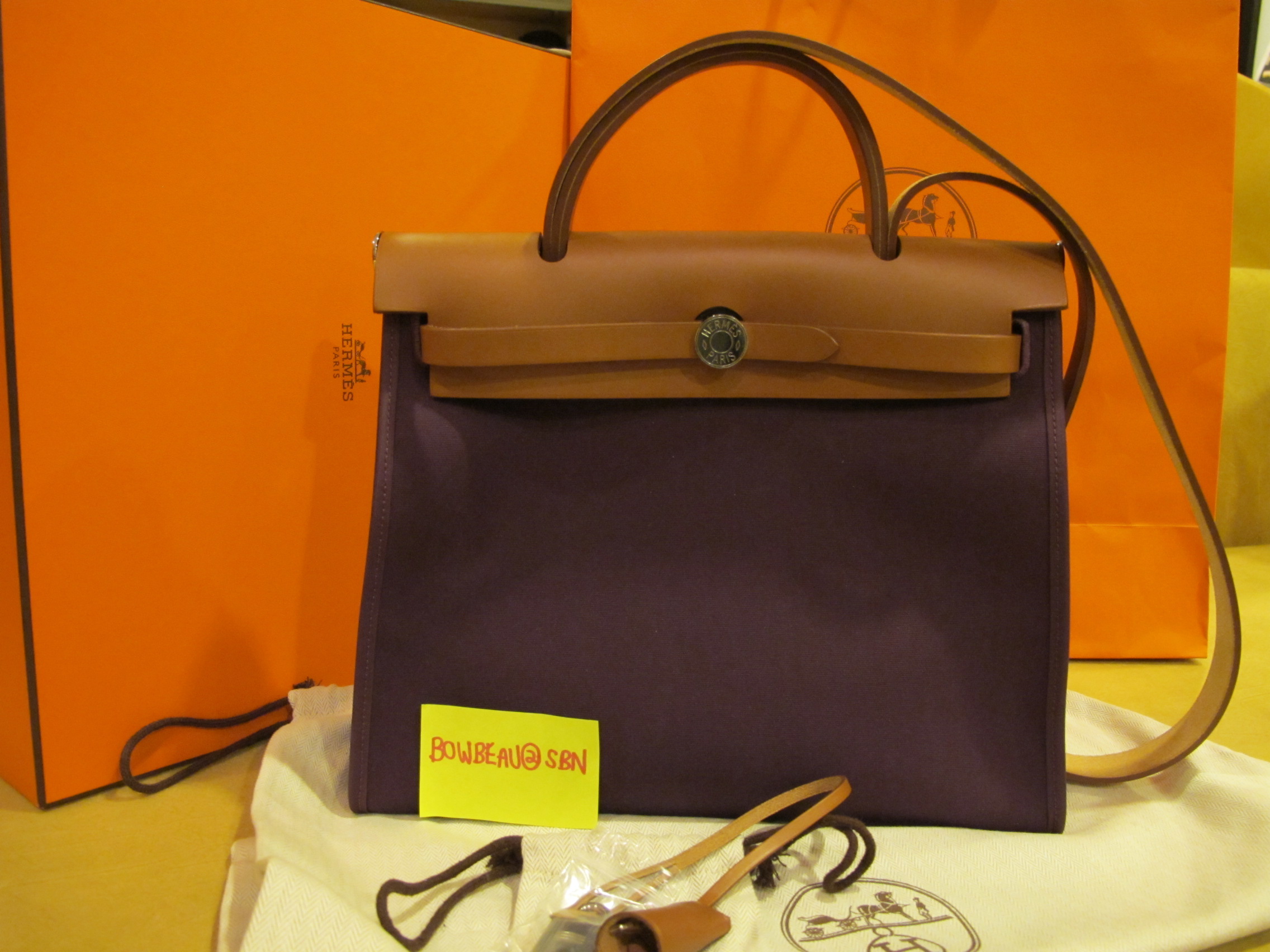 New Hermes Herbag size 32 Iris dark purple Cassia Canvas กล่อง อุปกรณ์ครบ ราคา 68000 บาท
