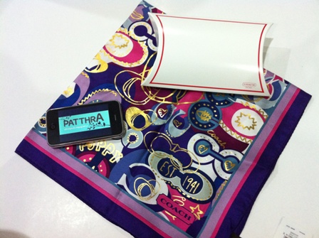(F97333) 22” x 22” ลายผ้าเก๋มาก ใช้ได้เรื่อยๆ ทุกโอกาส ขายพร้อมกล่องกระดาษ coach