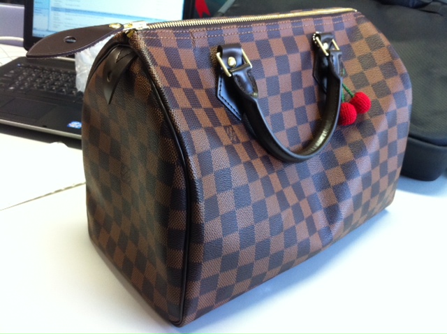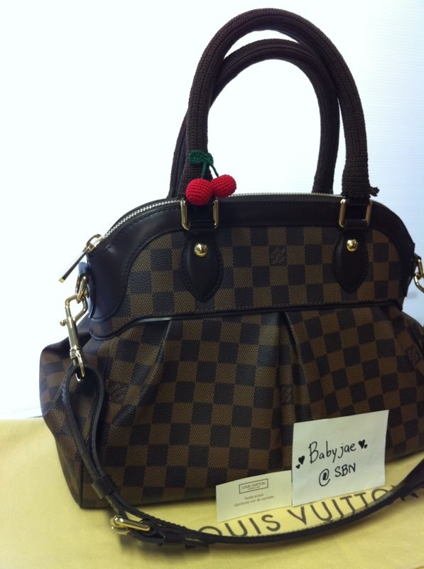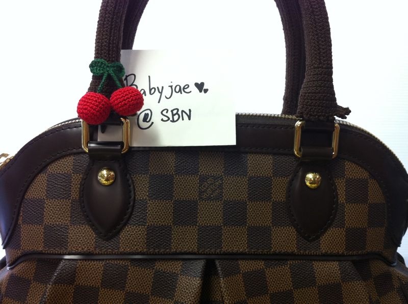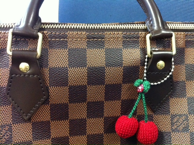อุปกรณ์: ถุงผ้า LV, การ์ดเล็ก LV, ที่จัดระเบียบกระเป๋า+ฐานรอง พวงกุญแจเชอรี่แบบถักเอาไว้ห้อยกระเป๋า