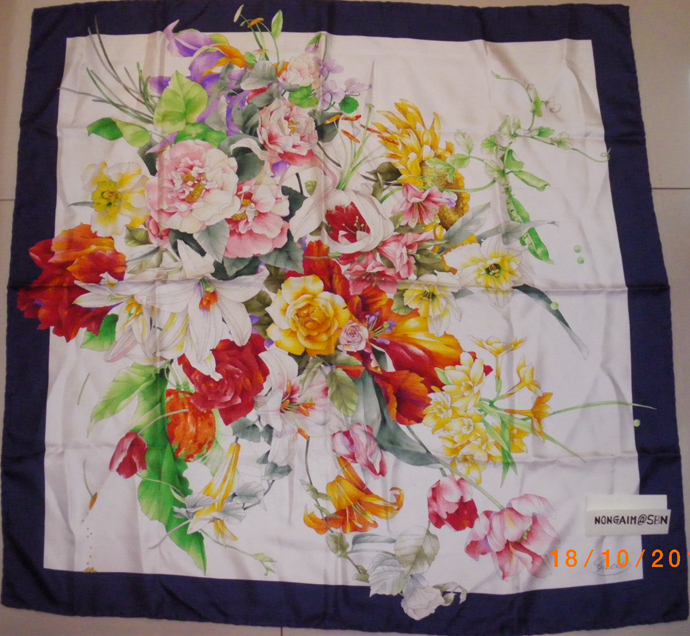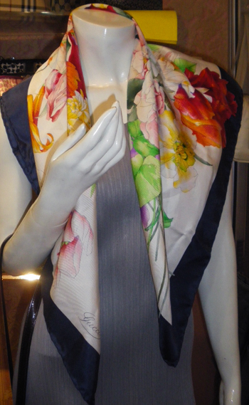 [SIZE="5"]USED ผ้าคลุมไหล่ GUCCI ขอบน้ำเงินลายดอกไม้