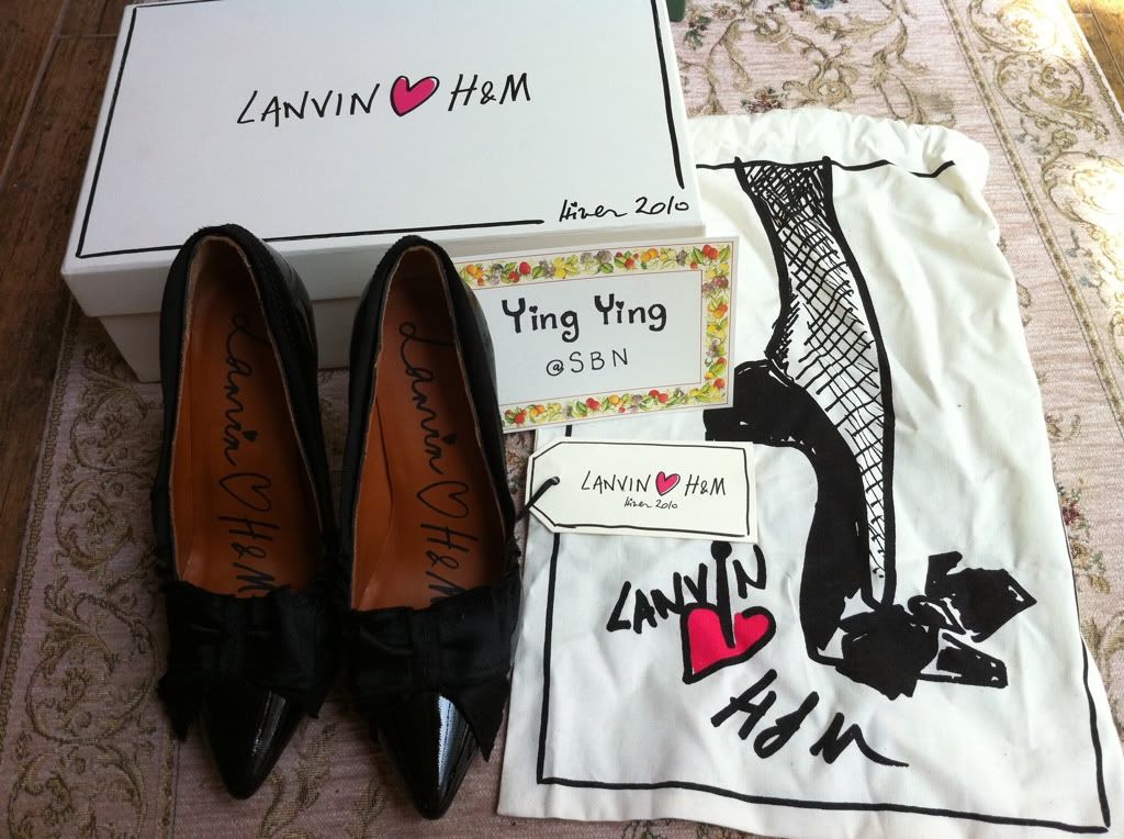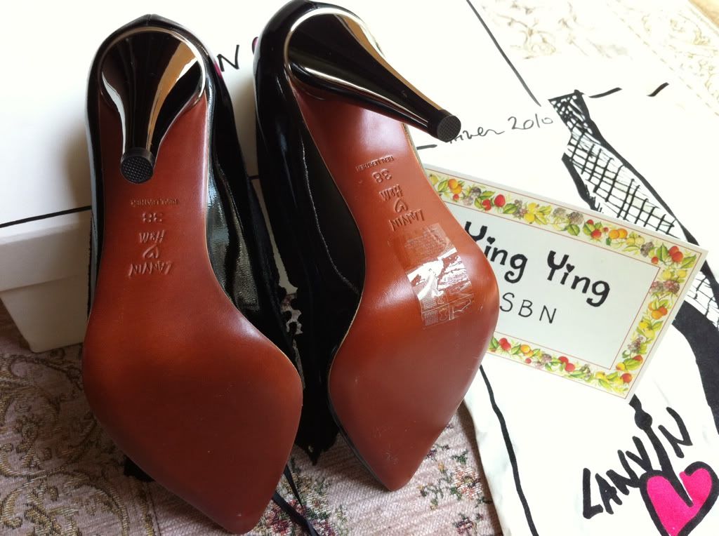 สีพื้นรองเท้า โบว์ ผ้าที่ใช้ ขอบอกว่า Lanvin H&M มีความใกล้เคียงกับ Lanvin Paris มากคะ Collection 2011 ของ Lanvin ก็มีแบบคล้ายกันแต่ ส่วนหัวจะมนกว่า จะพยายามหารูปมาให้ดูนะคะ