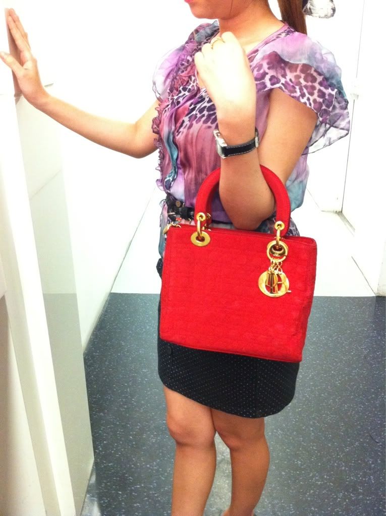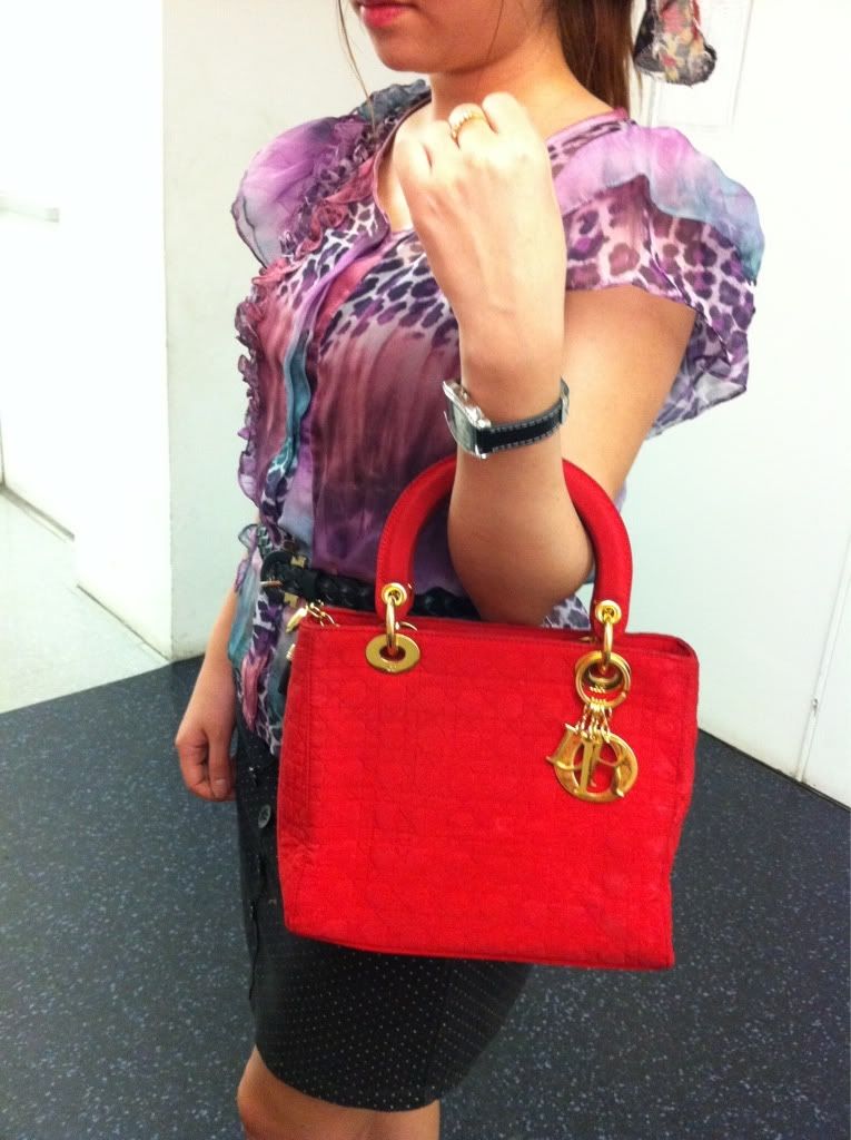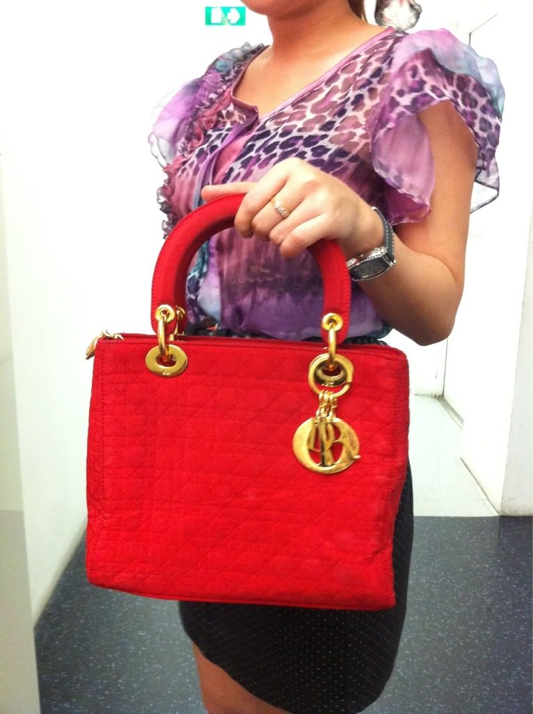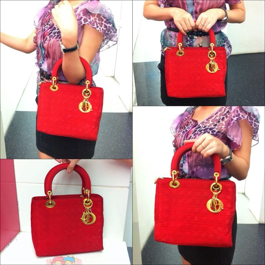 ♥♥ USED RED LADY DIOR GOLD HARDWARE 10" ♥♥