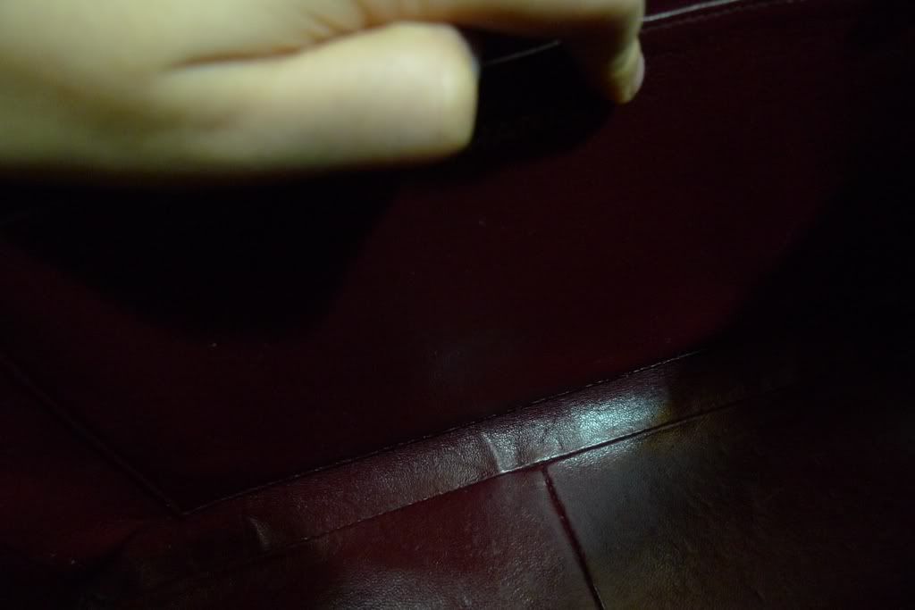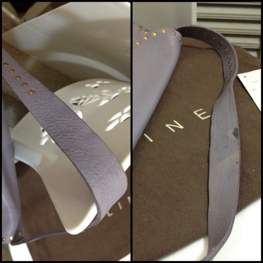 มีตำหนิที่ขอบและสายด้านใน เป็นลอยหนังถลอกเล็กน้อย ซึ่งเวลาใช้งานจะสังเกตไม่เห็น(ตามในภาพ)