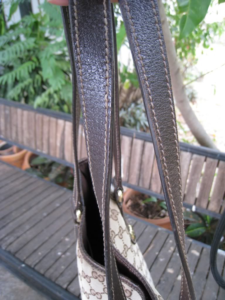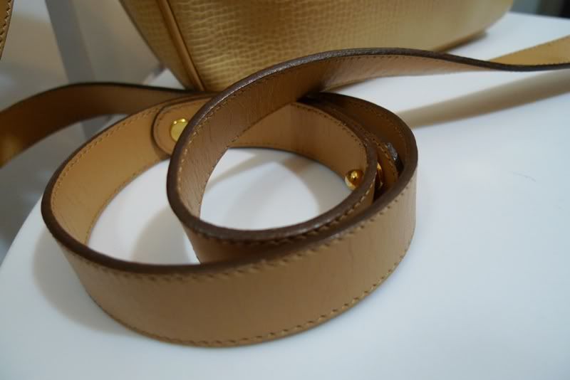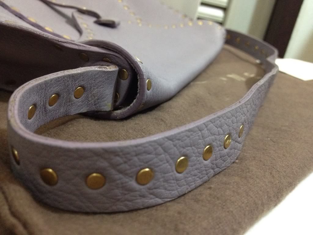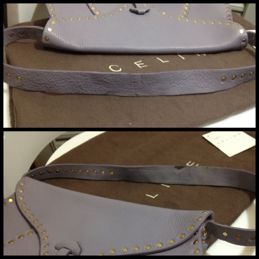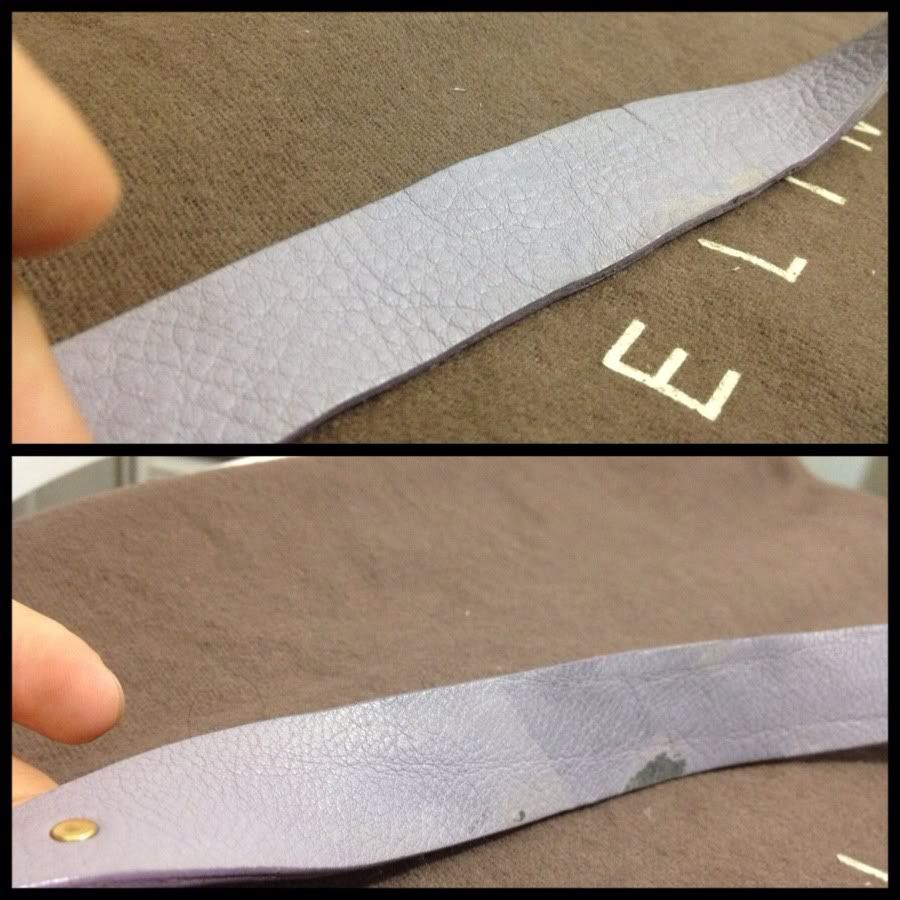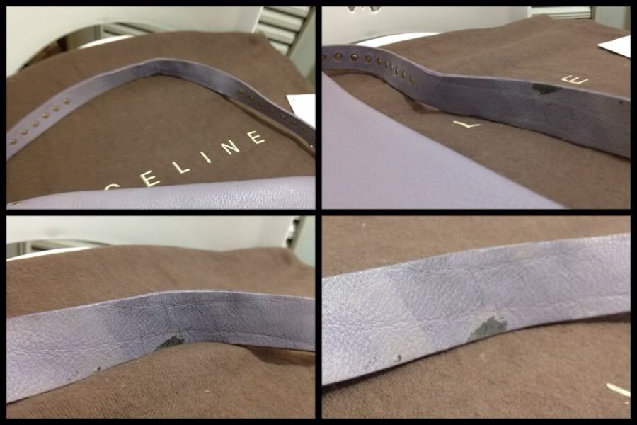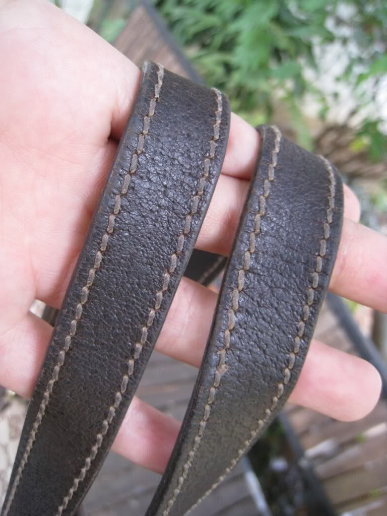สายสีเข้มไม่สม่ำเสมอทั้งเส้น บางจุดสียังอ่อน ส่วนบริเวณที่ใช้สะพายจะมีสีเข้มกว่าเนื่องจากการใช้งาน