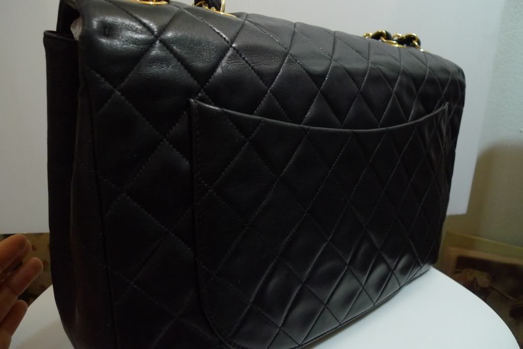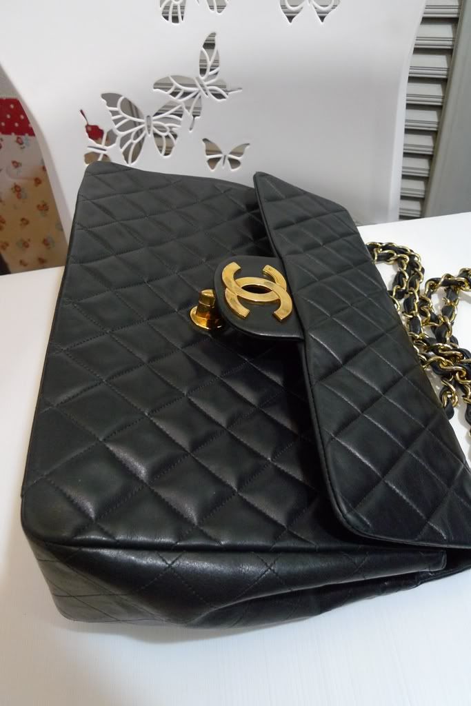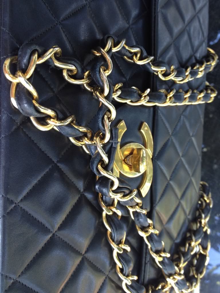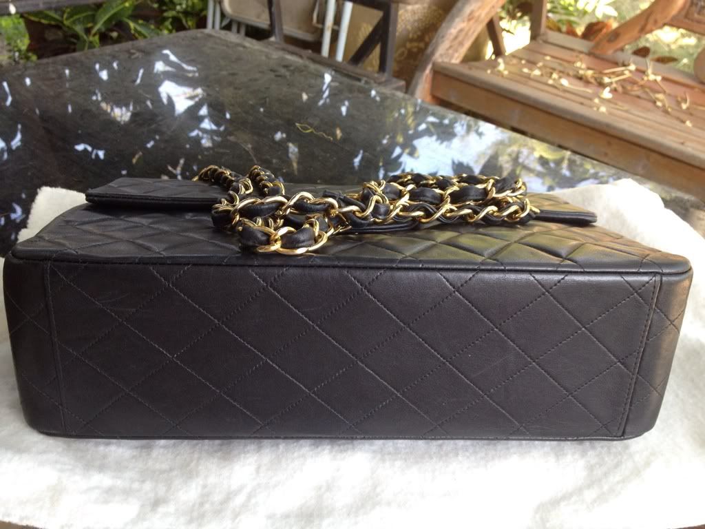 ♥♥ Used Chanel Maxi 13.5" Big CC Logo Black Lambskin Gold Hardware ♥♥