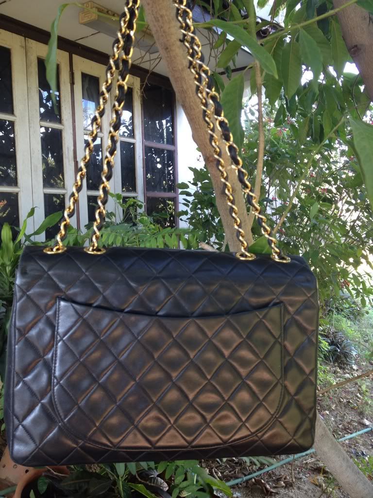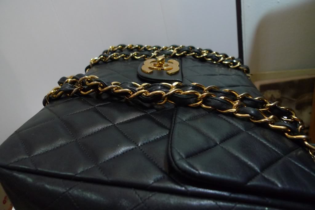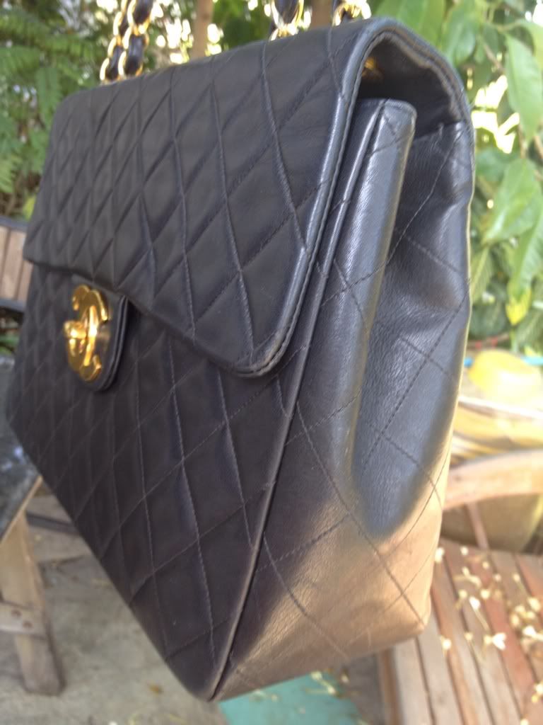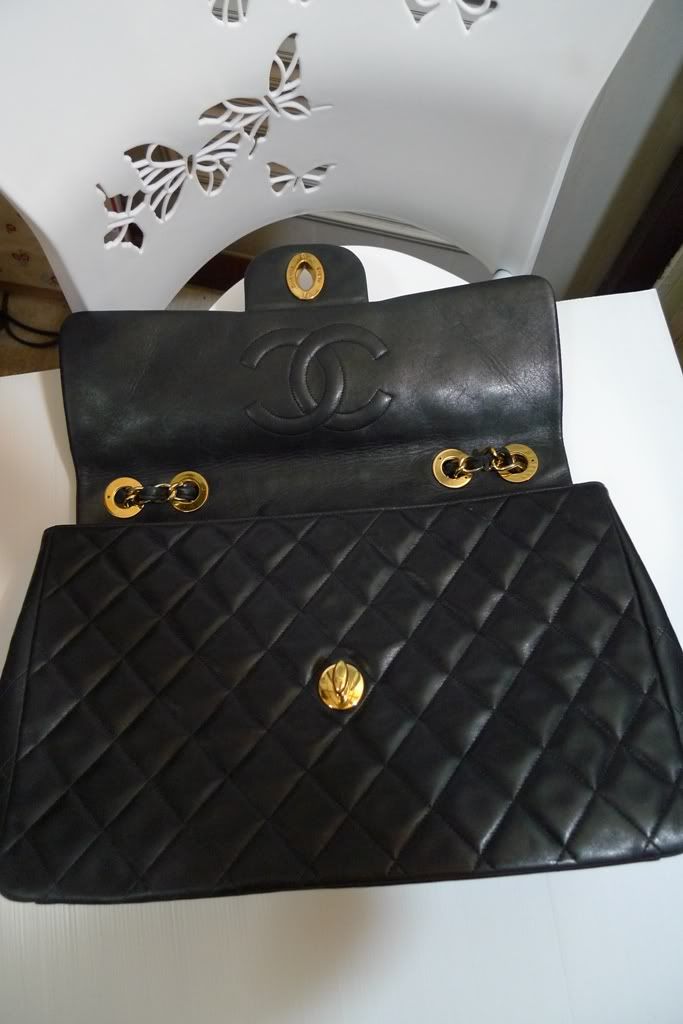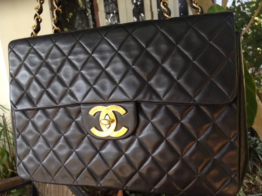 ♥♥ Used Chanel Maxi 13.5" Big CC Logo Black Lambskin Gold Hardware ♥♥