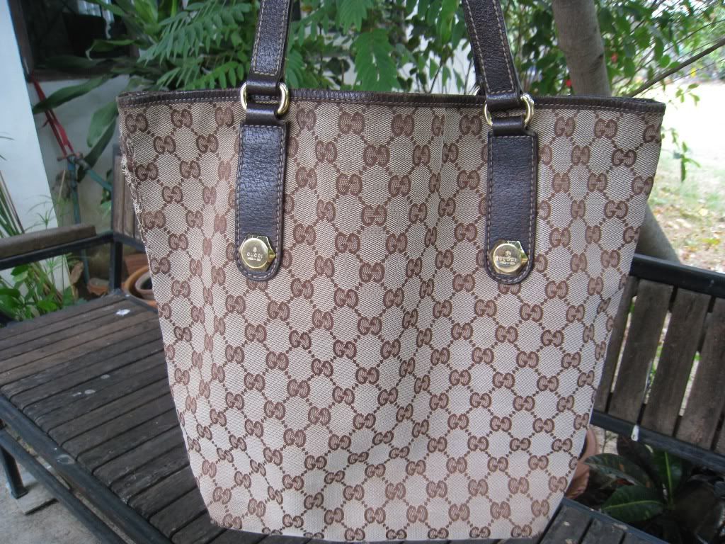 Gucci ทรงถัง รุ่นนิยม ใบนี้สีผ้าทอและอะไหล่ทำให้ดูหรูมากค่ะ