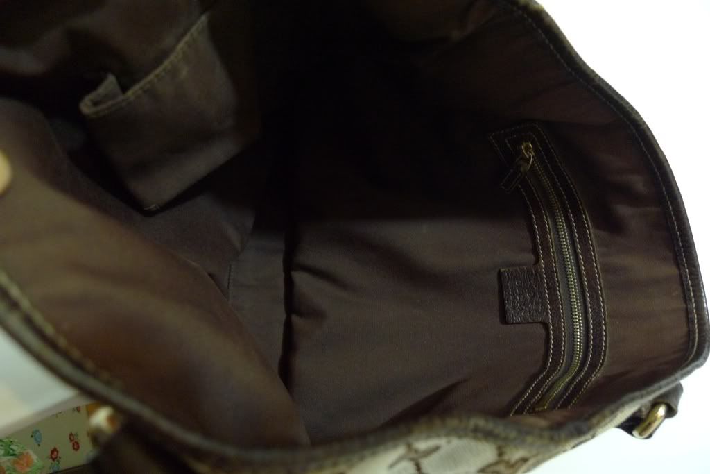 โฮโรแกรมด้านในซิปยังอยู่ชัดเจน โฮโรแกรมที่ด้านในฐานกระเป๋าค่อนจางแล้ว