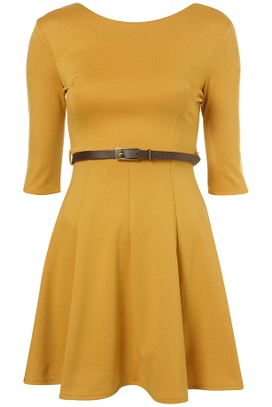 TOPSHOP Skater Belt Dress by Rare (Mustard)