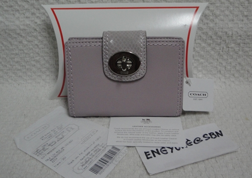 4. COACH - 43608 Turnlock Leather Medium Wallet สี Patel Pink ขนาด 5*4 นิ้ว กระเป๋าเงินรุ่น HISO เป็นหนังอย่างดีทั้งใบ ใส่บัตรเครดิต ได้ 7 ใบ มีช่องซิปสำหรับใส่เหรียญ เป็นของใหม่ป้ายห้อยคะ อุปกรณ์มี น้องเป๋า / Gift Receipt / Care Card และกล่อง Coach ราคาพิเศษ 3,490 บาท