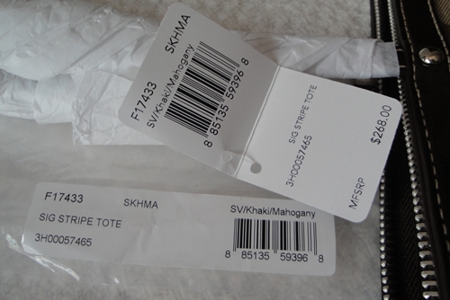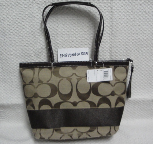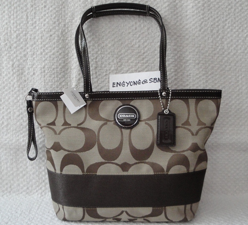 5. COACH - 17433 Signature Stripe Tote สี Khaki/Mahogany (กากี/น้ำตาล) ขนาด 14*10*3.5 นิ้ว แบบ Classic อินเทรนตลอดกาล เป็นของใหม่มือหนึ่งคะ อุปกรณ์มี น้องเป๋า / Care Card และ ถุงพาสติกจาก Coach ราคาพิเศษ 5,190 บาท